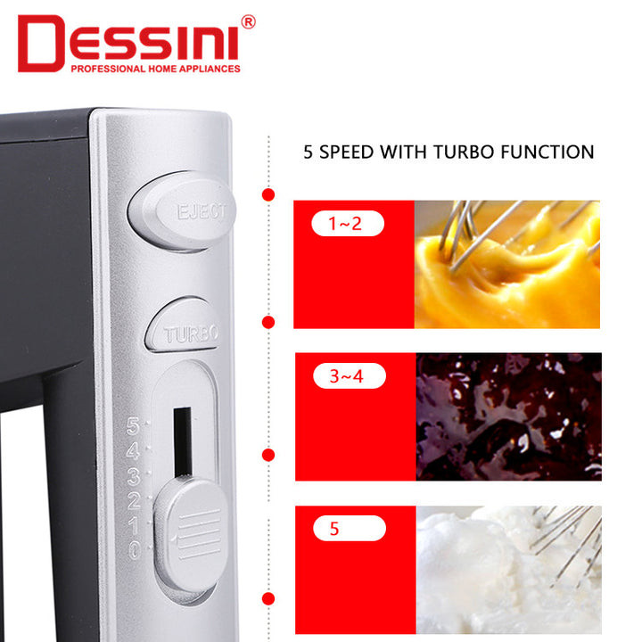 همزن برقی دسینی مدل DS-268 با استفاده از برق کار میکند و با توان 600 واتی که دارد برای همزدن شدید، مخلوط کردن یا یکنواختکردن غلظت مواد مخلوط شده استفاده میشود. این همزن دارای بدنه استیل و پلاستیک، موتور ۵ سرعته، دکمه توربو، میله های استیل ضد زنگ مخصوص همزن و خمیر زن و دکمه اجکت مخصوص خارج کردن آسان میله ها است.