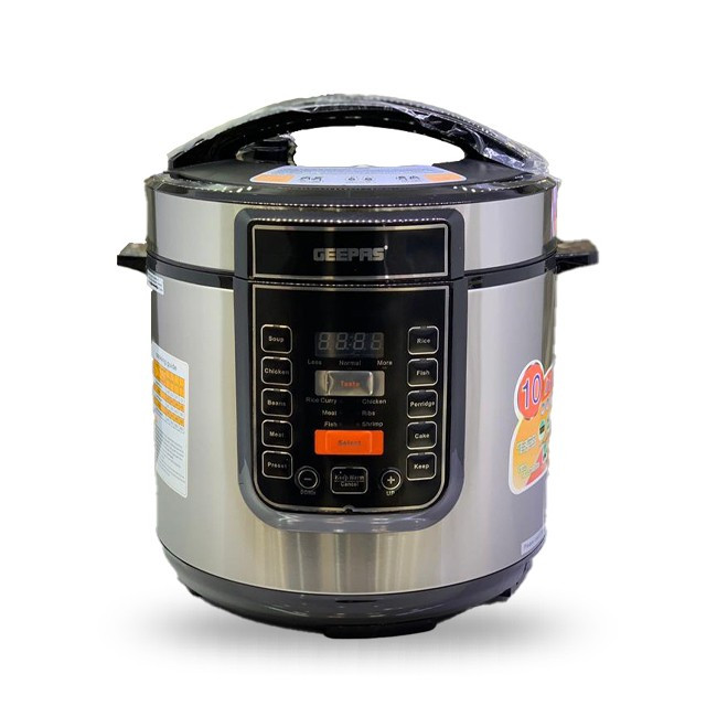 زودپز 14 کاره GEEPAS GMC5326N دارای پنل بزرگ دیجیتالی بوده که تنها با یک لمس می توان برنامه مورد نظر خود را انتخاب کرد. یک صفحه نمایش LED در قسمت بالای پنل وجود دارد که تنظیمات مختلف را برای کاربر نشان می دهد. گنجایش دیگ زودپز، 6 لیتر است که برای تهیه غذا برای هشت نفر مناسب خواهد بود. بعد از اتمام آشپزی می توانید دیگ را خارج کرده و به راحتی شستشو داد. همچنین برای حمل آسان و راحت دستگاه دو عدد دسته بزرگ در دو طرف دستگاه تعبیه گردیده است.