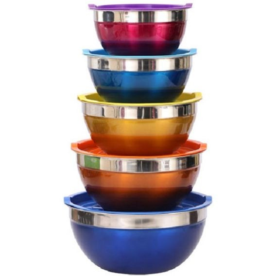 لگن استیل درب دار ۵ تکه رنگی