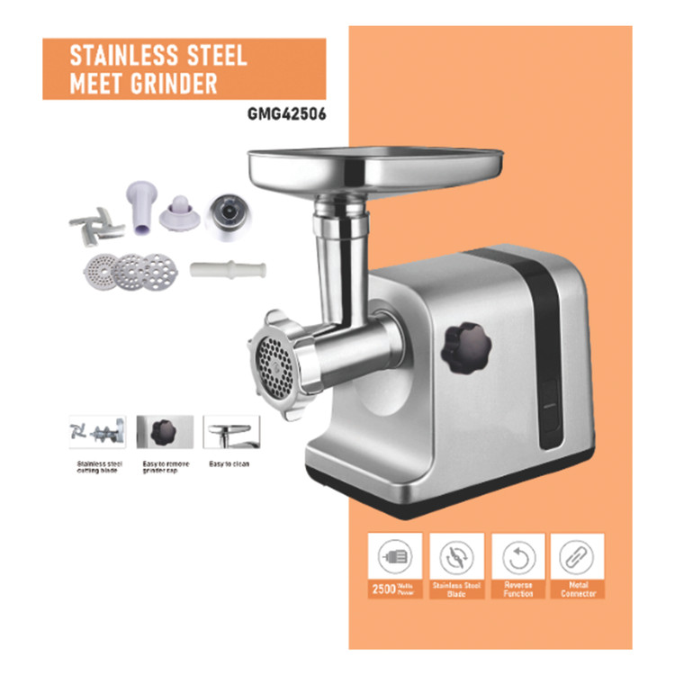 چرخ گوشت استیل ضد زنگ Geepas دارای حداکثر توان 2500 وات است. گوشت را سریعتر و کارآمدتر از دستی آسیاب می کند.