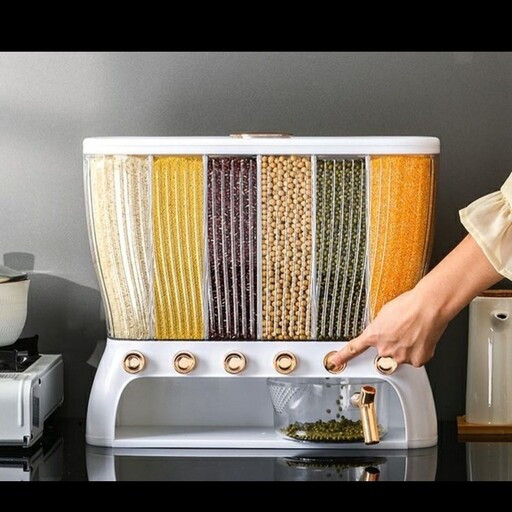 مشاهده محصولات مرتبطظرف حبوبات و جا حبوبات وارداتی ضد نم و رطوبت، این کار دارای 6 مخزن مختلف هست که با فشار دادن دکمه هر مخزن میتونید اقدام به تخلیه هر کدام بکنید همچنین محفظه ای برای سیر روی درب هست تا از نزدیک شدن حشره به مواد غذایی جلوگیری کنه و با فشار دادن دکمه به راحتی حبوبات رو از خروجی زیر کار به داخل کشو تخلیه میکنه