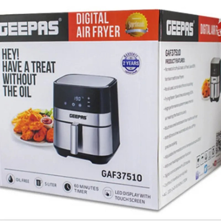 سرخ کن بدون روغن جیپاس مدل GAF37510 دستگاهی شیک و بینظیر با بدنه سیلور/ مشکی از کمپانی جیپاس است که زیبایی را به آشپزخانه شما هدیه میدهد. سرخ کن بادی Geepas دارای دسته خنک راحت، حمل و جابجایی آسان است. در حین کار لیز نمیخورد زیرا دارای پایههای ضد لغزشی با قدرت بالا است. سرخ کن بدون روغن جیپاس مدل GAF37510 با ظرفیت 5 لیتری بزرگ، برای طبخ غذا برای کل خانواده کافی است. با تایمرهای 60 دقیقه ای و محدوده دمایی تا 200 درجه سانتیگراد، میتوانید غذای مورد علاقه خود را راحت تر و سریعتر کباب کنید، بپزید و سرخ کنید. استفاده از تطبیق پذیری برای نیازهای مختلف شما بسیار کاربردی است. سبد داخلی آن نچسب است و قابل شستشو در ماشین ظرفشویی است. تمیز کردن آسان فقط چند دقیقه زمان میبرد