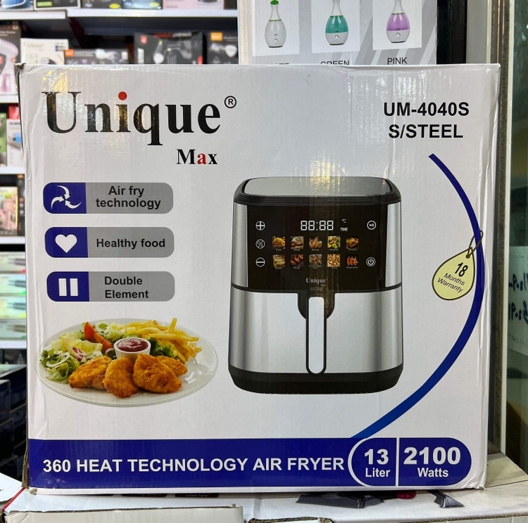 سرخ کن 13 لیتری 2100 وات یونیک مکس مدل 4040 از پرطرفدارترین سرخ کن های رژیمی بدون روغن در بازار میباشد. این سرخ کن با توان 2100 وات و گنجایش 13 لیتر به خوبی نیاز شما به سرخ کن رژیمی را برطرف کرده و تا چندین سال بدون خرابی قطعات در آشپزخانه شما کار خواهد کرد. سرخ کن مدل 4040 یونیک مکس از کیفیت بدنه خوبی برخوردار است و از دیگر ویژگی های آن صفحه لمسی جهت انتخاب حالت های مختلف پخت و تایمر قطع خودکار است.