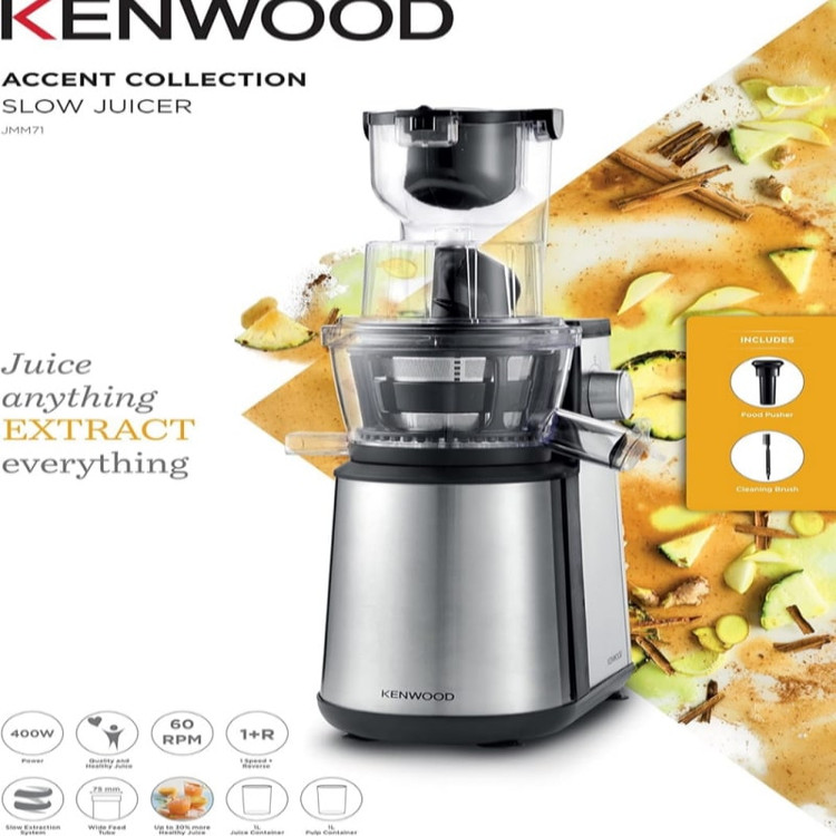 عصاره گیر کنوود مدل jmm71 که به آن آبمیوه گیر پرسی هم می گویند، دستگاهی هست که با سرعت کم ولی با قدرت زیاد هست. جنس بدنه از استیل ضد زنگ بوده و با قدرت 400 وات کار میکند. کارکرد این محصول به صورت تک کاره بوده و که اقدام به خرد کردن و فشردن میوهها، سبزیجات، ساقه گندم و سایر مواد مغذی میکند.
