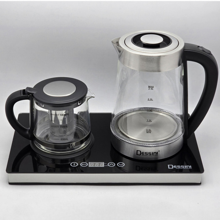 این چای ساز یک کتری شیشه ای به گنجایش گنجایش 2 لیتر دارد. روی دسته ی این کتری یک دکمه برای باز کردن درب قرار داده شده. قوری این چای ساز هم از جنس شیشه و به گنجایش 1 لیتر است. این قوری دارای طوری استیل برای فیلتر تفاله های چای است.