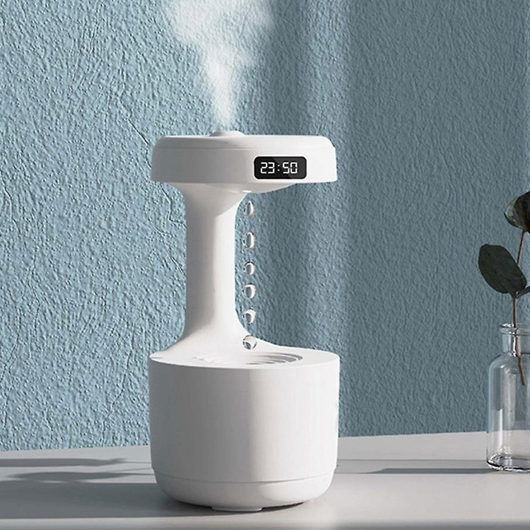 یک دستگاه رطوبت ساز مجهز به نمایشگر ساعت و یک ویژگی جذاب و خیره کننده تحت عنوان جریان آب ضد جاذبه.