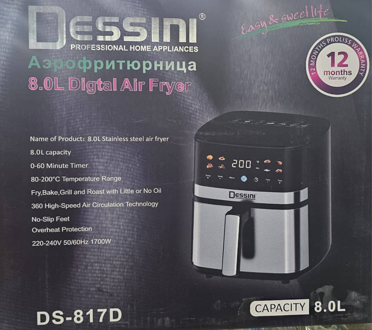 سرخکن بدون روغن دسینی مدل ۸۱۷ با طراحی مدرن و عملکرد قدرتمند، گزینهای مناسب برای پخت غذاهای سالم و کمچرب است. این دستگاه با ظرفیت 8 لیتر و توان ۱7۰۰ وات، امکان تهیه انواع غذاها را با کمترین میزان روغن فراهم میکند. سیستم گرمایش ۳۶۰ درجه و سبد نچسب، پخت یکنواخت و سریع غذا را تضمین میکند. صفحه نمایش لمسی، ۱۰ برنامه پخت پیشفرض، و امکان تنظیم دستی دما و زمان، کنترل دقیقی بر فرآیند پخت ارائه میدهد.