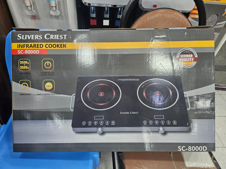 اجاق برقی القایی سیلور کرست: اجاق برقی سیلور کرست مدل 8000 از دیگر محصولات کارخانه جات سیلور کرست میباشد که محصولی منحصر به فرد با تنظیم حرارت 2000wتا3500w و مجهز به نمایشگر LED و ولوم تنظیم توان و دکمه های هوشمند برای پخت انواع مواد غذایی (حرارت مناسب انواع مواد غذایی) می باشد. از دیگر قابلیت های این محصول میتوان به القایی بودن آن اشاره کرد. از قابلیت های القایی بودن مصرف توان پایین نسبت به المنت و گرم نشدن بدنه دستگاه به جز قسمت شعله می باشد. اجاق برقی تک شعله برقی لمسی سیلور کرست از جنس شیشه می باشد که دارای پنل لمسی با نمایشگر دیجیتال است. این اجاق تمام برقی است.